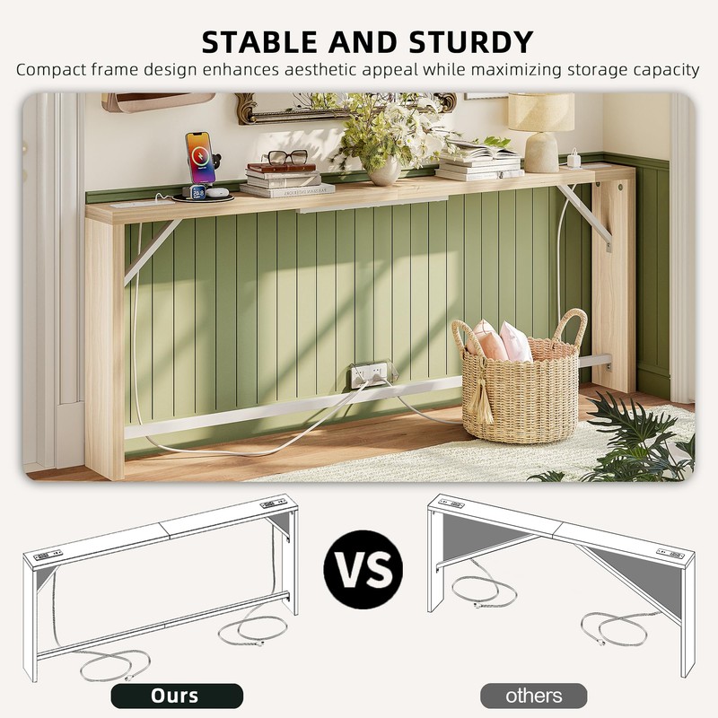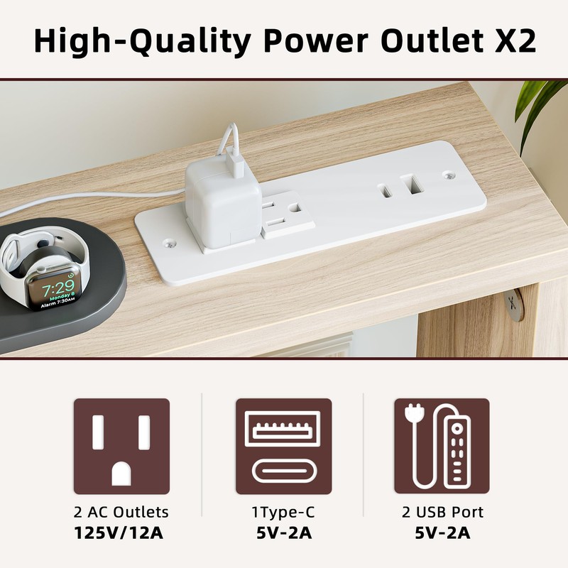- 「Dual Outlet Design」: One outlet is placed on each end of the sofa table, making it convenient to use devices from either side of your couch.