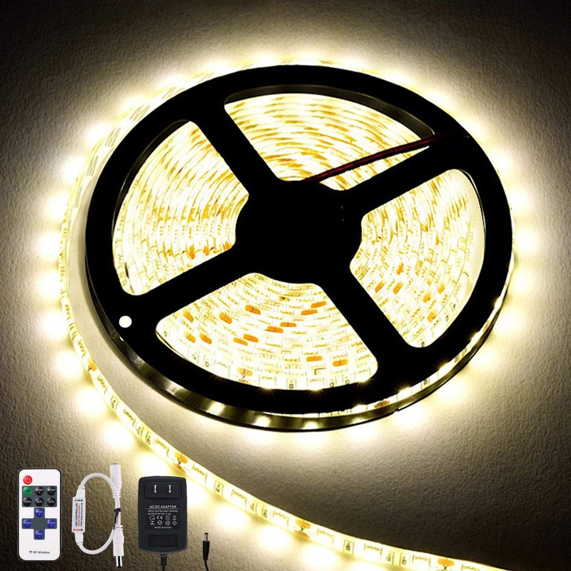 Tira LED, Tira de Luces LED, 5M 300 LEDs con Control Remoto, Tira Impermeable IP65,para Cocina, Recámara Sala de estar,Dormitorio,(Blanco Calido)
