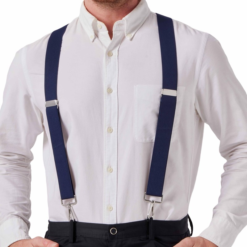 Tirantes con cuatro ganchos para hombre de 3/8 pulgadas de ancho, correas elásticas en la espalda en X, Azul, Medium
