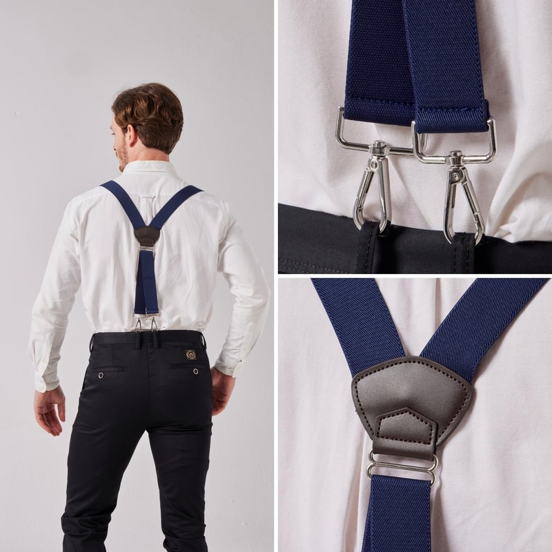 - Cuatro ganchos resistentes: equipados con cuatro ganchos de metal fuertes, estos tirantes proporcionan un apoyo confiable para mantener tus pantalones en su lugar, asegurando un aspecto pulido durante todo el día.