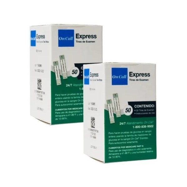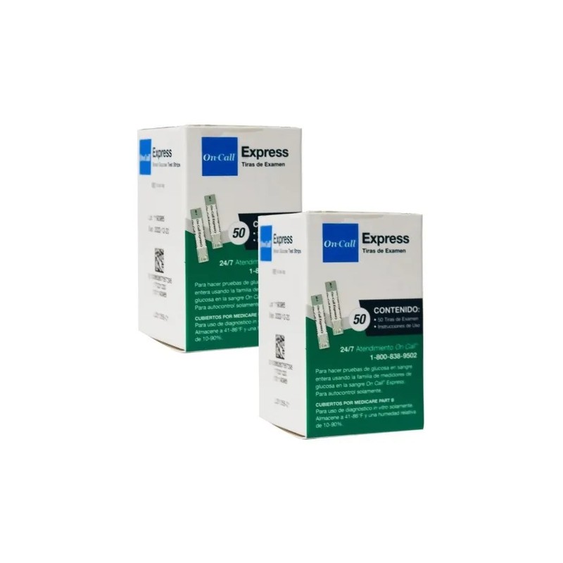 Para uso de diagnóstico in vitro. Las tiras de examen On Call Express se utilizan para medir la cantidad de glucosa en sangre completa fresca de capilar. La sangre puede tomarse del dedo, el antebrazo o la palma de la mano. El sistema se utiliza para supervisar el funcionamiento de los programas de control de la diabetes.