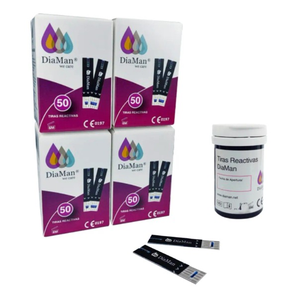 Descubre la tranquilidad y el control que te ofrecen las Tiras Reactivas para Glucosa DiaMan. Este pack de 200 unidades es tu aliado perfecto para un monitoreo preciso y constante de tus niveles de glucosa. Imagina la comodidad de tener un suministro confiable, dividido estratégicamente en 4 frascos de 50 tiras, diseñados exclusivamente para tus glucómetros DiaMan. ¡Olvídate de las preocupaciones y enfócate en lo que realmente importa: tu salud! 💚