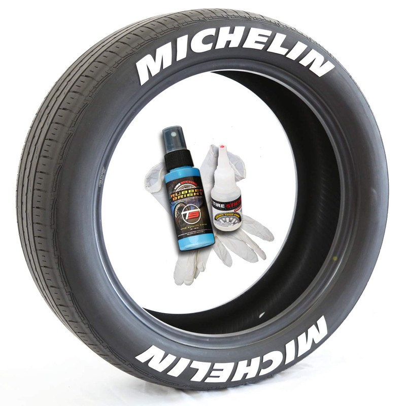 The Permanent option - These raised white rubber tire decals can withstand practically anything. Prep the tire surface and glue on these Michelin tire letters. Avoid contact with oil based tire care products and clean your Tire Stickers once a month for a clean, lasting look.