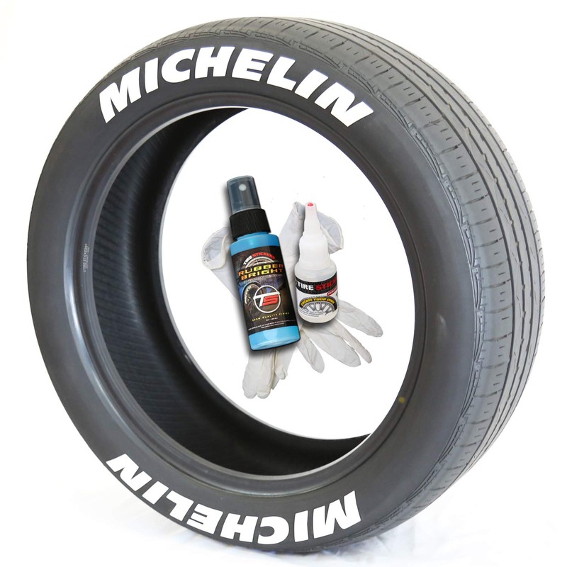 The Permanent option - These raised white rubber tire decals can withstand practically anything. Prep the tire surface and glue on these Michelin tire letters. Avoid contact with oil based tire care products and clean your Tire Stickers once a month for a clean, lasting look.