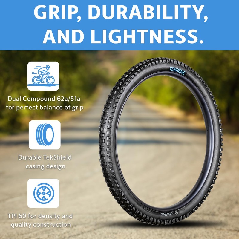 - Aggressive Mountain Bike Tires: Conquer your mountain biking experience with the Chunk 27.5x2.6 Tough, a lightweight, all-season capable tire built for aggressive trail riding on any terrain, from steep descents to forest trails.