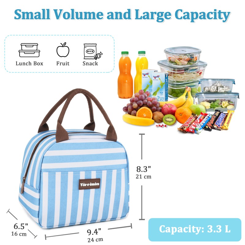 - VERSATILE - Tirrinia lunch bag has insulated aluminum foil lining and an PE foam interlayer to keep your food fresh and cold/hot for hours. Perfect for taking it to, work or picnic as a lunch bag, cooler bag or sundries bag, etc. Its cute look can handle any occasion!