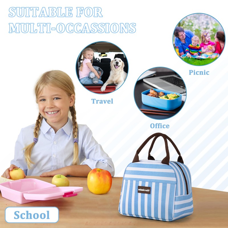 Tirrinia Lunch Bags for Women Men, Cute Insulated Lunch Tote Bag for Women, Fashionable Lunch Box for Adult, Reusable Large Cooler Lunch Bag for Working/Picnic - Blue Stripe