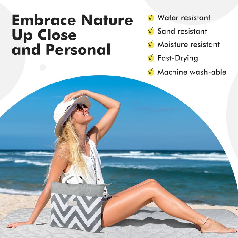 - Waterproof and Sandproof: The 300D Oxford fabric allows for sand to easily dust off and it can be spot cleaned with a damp cloth and air dried. After a picnic, you can easily wipe any stain with a paper towel.