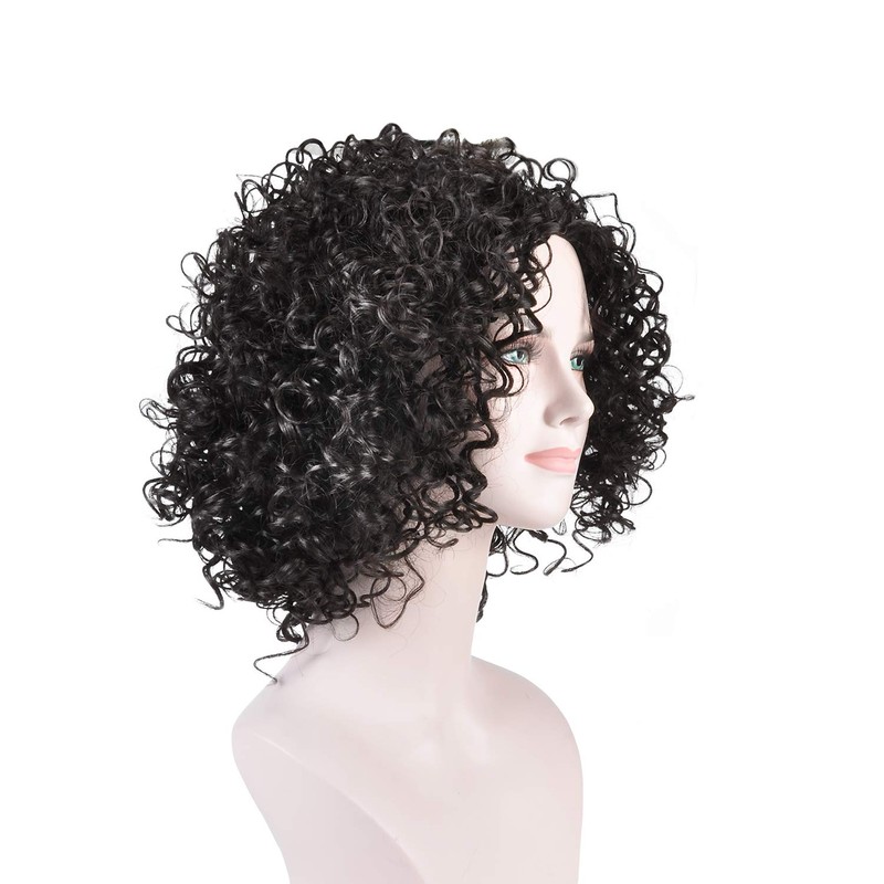 Tirrinia Synthetic Kinky Curly Half Wig Short Afro Wigs Heat Resistant Daily Wig Jet Black