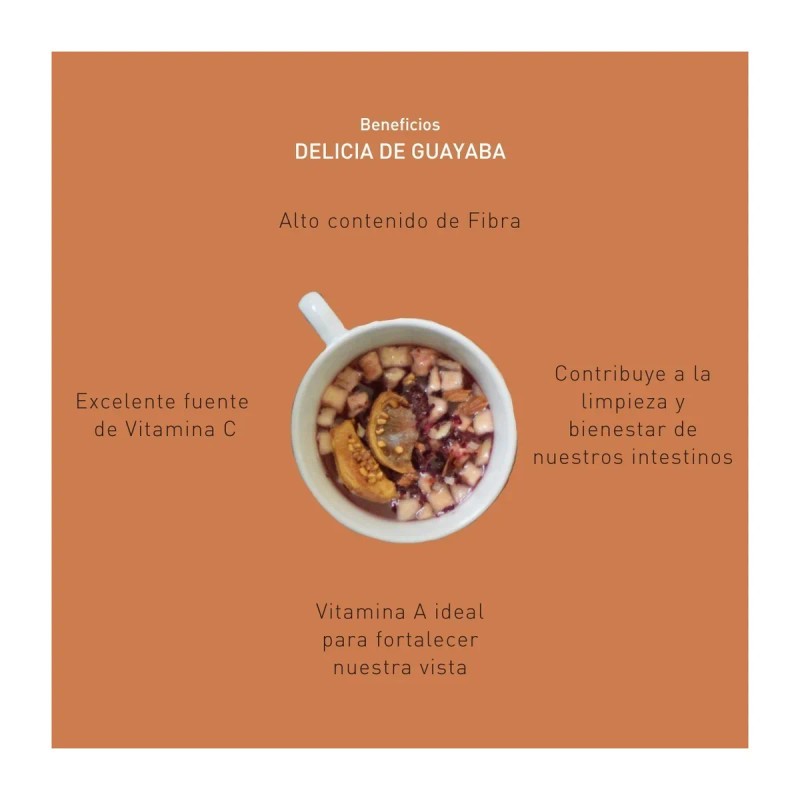 🍃 Sabor tropical y bienestar en cada taza ☕✨ Disfruta de esta infusión gourmet con guayaba y canela, una mezcla única que cuida tu salud y deleita tu paladar. ✅ 100% natural, sin conservantes. ¡Agrega al carrito y haz de cada taza un momento especial! 🛒💖