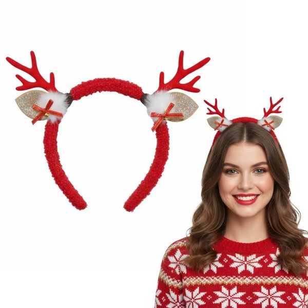 - 🎄 1. Sparkle with Festive Charm: Shine bright at every holiday gathering! This dazzling headband features glitter-covered reindeer antlers, accented with a classic red bow & delicate snowflake - all crafted to capture the magical essence of Christmas.