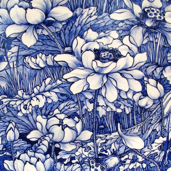 Tischdeko Pack of 20 Napkins Flower on Blue Rose