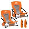 Tisetrail Low Profile Beach Chairs Set of 2 with Cup Holder Folding Mesh Sand Chairs for Adults Portable Lightweight Lowback Sling Chairs for Beach Camping Concert Travel Support 300lbs, Orange