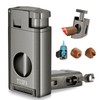 TISFA Torch Lighter with Cigar V Cutter, Hole Punch, Double Jet Flame Refillable Butane Lighter, Multifunctional Cigar Accessories, Windproof Cool Lighters for Smoking with Gift Box