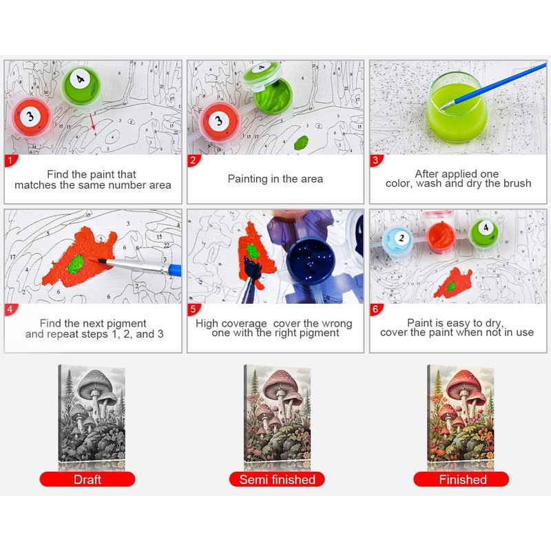 - 【Easy to Paint】You only match the numbers of the paint and the figures on the canvas to fill in the paint. Paint by color numbers, finish one by one. The paint by numbers suitable for all skills levels, whether you are adults, kids or beginners. Fill the color according to numbers, you don't need any painting skills.