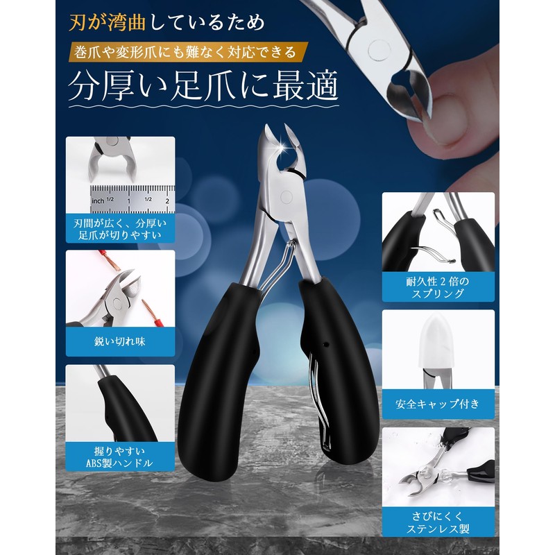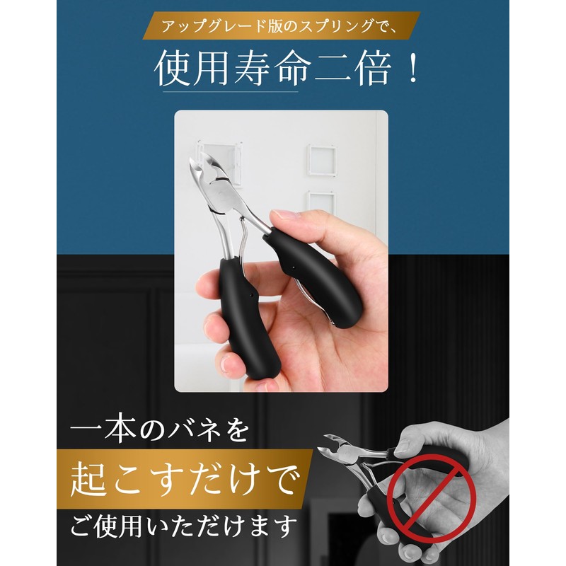 • (High Quality & Luxury) Nail Clippers for winding nails are made of high quality stainless steel, rust resistant and durable. Our nail clippers have two springs that will last longer than regular nail clippers. Resin finish on handle fingers The ergonomic design is non-slip and easy to hold, so you can use it without hesitation by both men and women. Even those with weak forces can cut easily