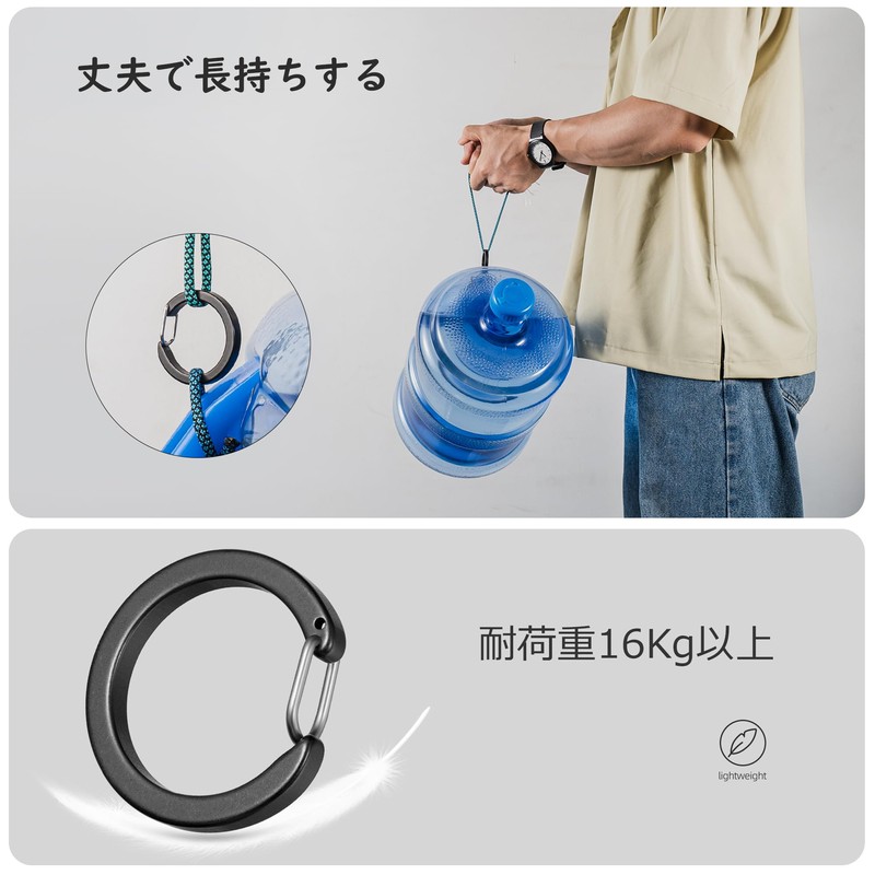 - One-touch Installation: The carabiner opens and closes easily with one touch. Strong spring holds items securely closed when hanging items. A convenient carabiner ring that can be used in a variety of ways