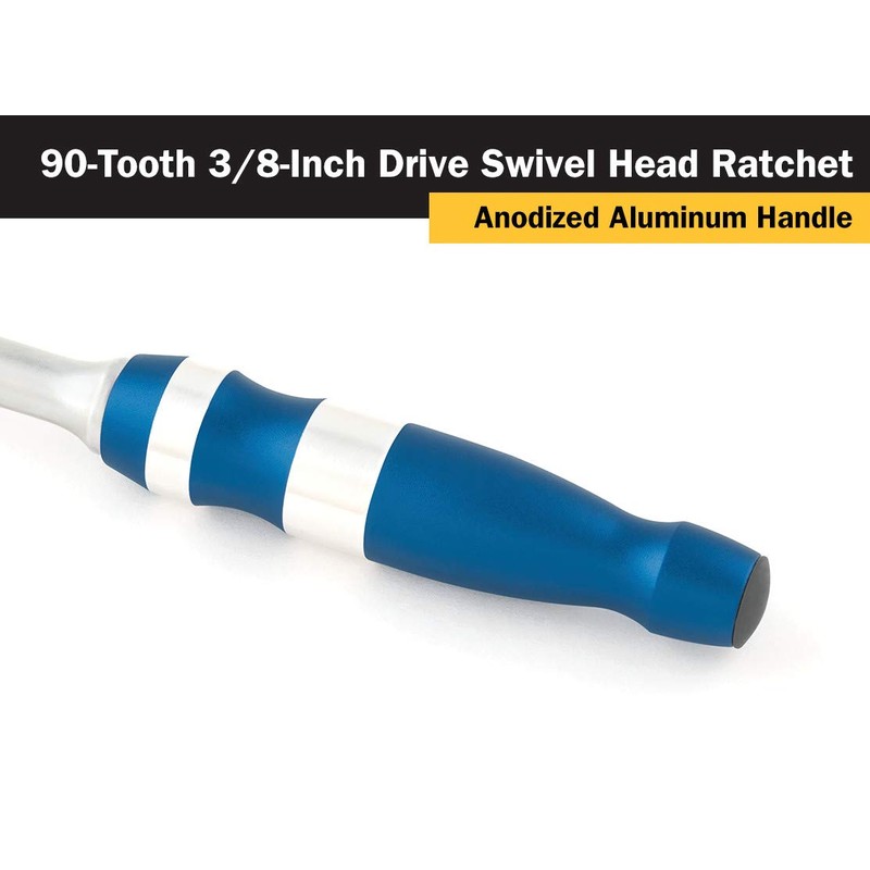 Titan 12168 3/8-Inch Drive 10-Inch 90-Tooth Swivel Head Ratchet is constructed of chrome vanadium steel with corrosion resistant satin finish and anodized aluminum handle. Round swivel head pivots through a 180-Degree range for multiple drive angles. 90 Tooth reversible ratcheting mechanism produces a sweep of only 4 degrees. 4-Degree, compact sweep - perfect for use in confined, hard to reach areas in cramped engine compartments and other tight spaces. Quick-release drive and spring-activated detent ball provides secure retention of sockets and allows for easy removal and insertion of socket. Meets 150% ANSI. Swivel head ratchet is made in Taiwan. Ratchet rebuild kit available – part # 12173.