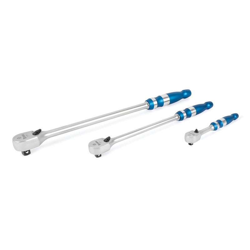 - Flat Head Ratchets included: (1) 1/4-Inch Dr. x 6-Inch, (1) 3/8-Inch Dr. x 12-Inch, (1) 1/2-Inch Dr. x 16-Inch