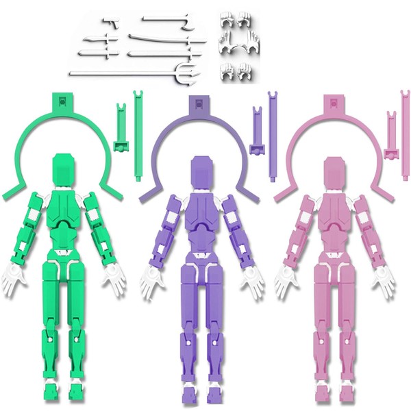 Titan 13 Action Figure, 3Pcs T13 Figure 3D Printed Lucky 13 Model Toy PVC Multi-Jointed Movable Robot Figure Desktop Decoration (Purple, Green, Pink)