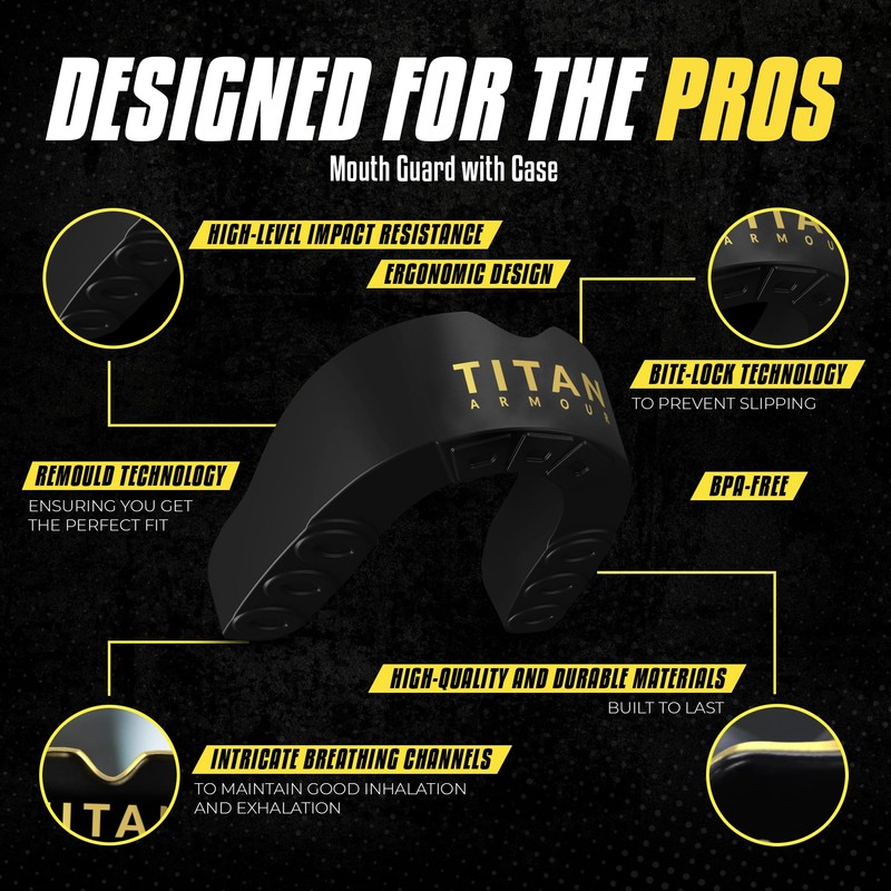 Titan Armour® Gum Shield w/Dual-Layer Technology | Adults & Junior Custom-Fit Mouth Guard | Case Inc | Boil & Bite Mouthguard: Boxing, Rugby, MMA, Hockey & All Contact Sports | UK Brand Age <11 Gold