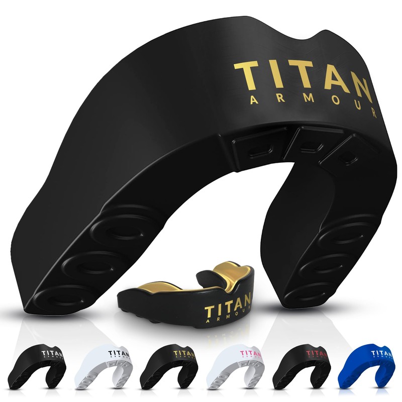 The Titan Armour boxing gum shield features an innovative 2-layer technology specially engineered to offer maximum protection and a comfortable fit! This design is comprised of an inner gel layer that can be fully customised to your teeth shape, filling all the gaps, and an outer, pre-contoured protective layer, specially designed to withstand powerful shocks! The mouth guard has a bite-lock technology that keeps it in place and prevents slipping while keeping the breathing channels free for easy inhalation and exhalation.