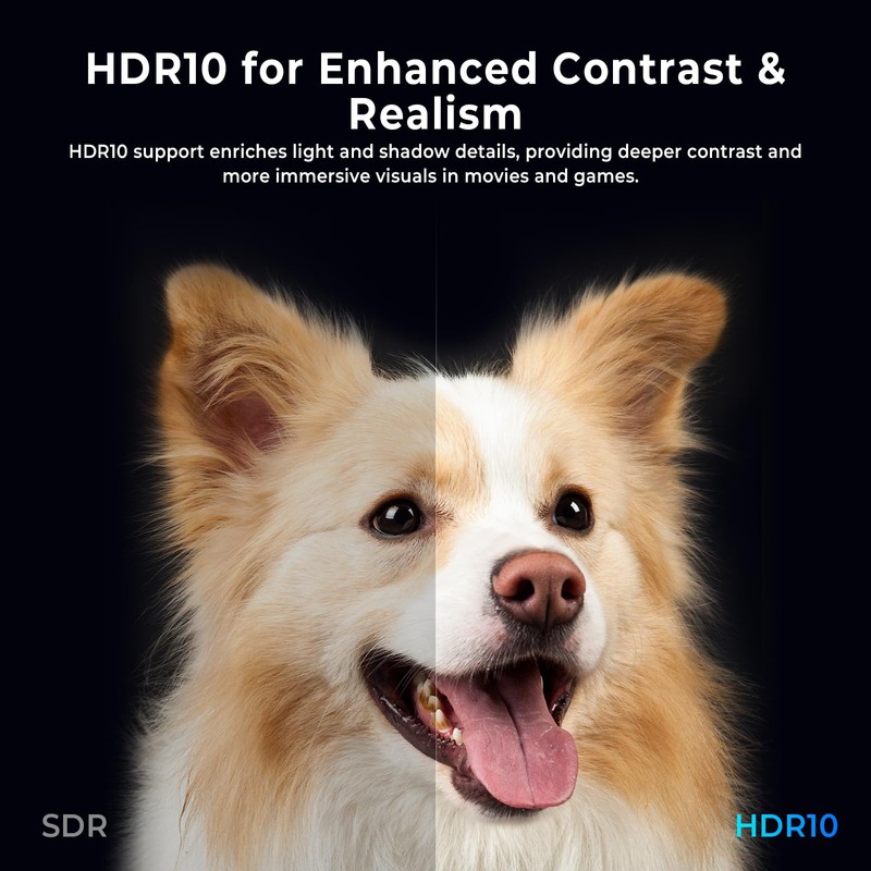 The AMD FreeSync (Adaptive-Sync) technology synchronizes the monitor’s refresh rate with your GPU, eliminating stutter and tearing for smooth gameplay. HDR support enhances dynamic range, delivering brighter highlights and deeper shadows for a more immersive experience.