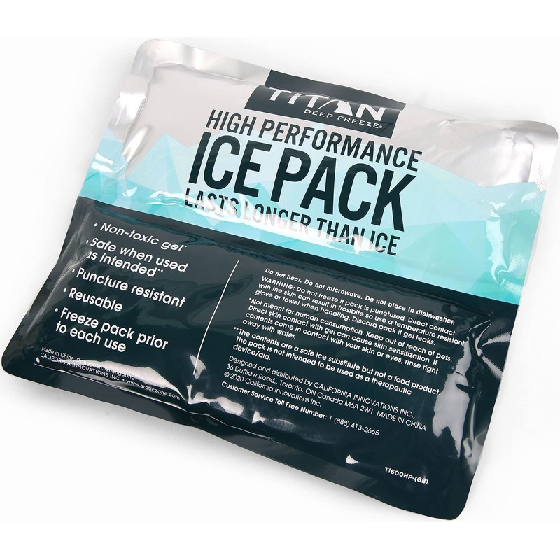 - TITAN DEEP FREEZE HIGH PERFORMANCE ICE PACK: Ice pack features a soft, puncture-resistant design; Helps keep cooler and tote bag contents cold
