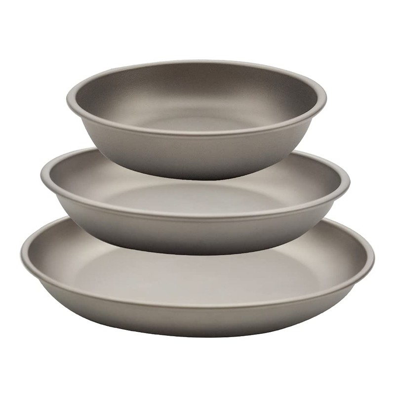 TITAN MANIA Plate, Tray, Titanium, S, M, L, 3-piece Set, Lightweight, Tableware, Plates, Camping, Stylish, Dish, Barbecue, Compact, Picnic, Plate, 3 Sizes Available
