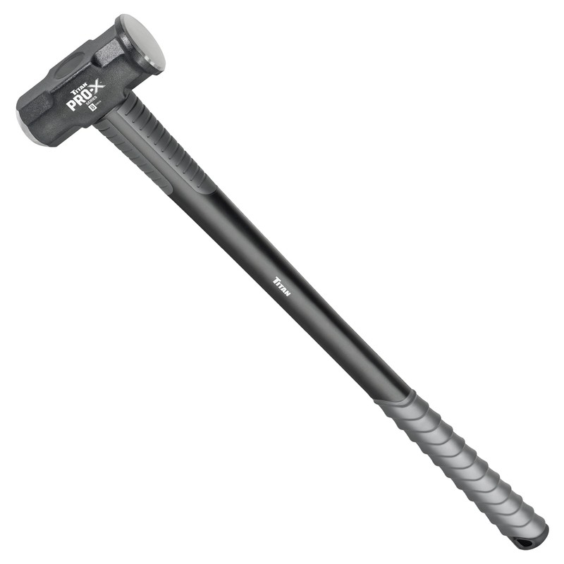 Titan Pro-X 63018 8lb Sledge Hammer, Dual-Face Sledge with Cross-Pattern Face for Concentrated Power & Flat Face for Stake Driving, Overstrike Protection, 36" Fiberglass Handle with Textured Grip