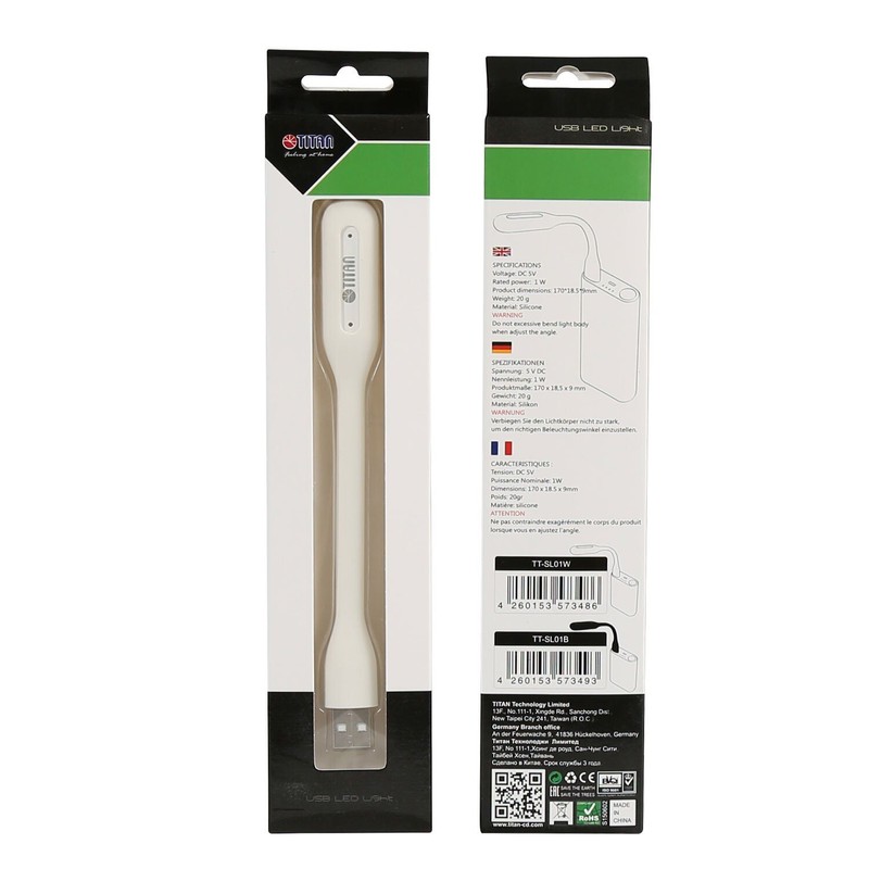 TITAN Unisex - Adult TTL-SL01W LED USB Light, Number 100, White, 10 cm