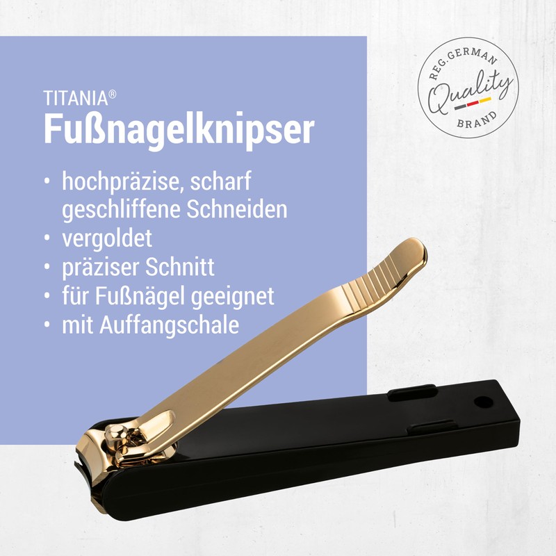 TITANIA Fußnagelknipser mit Auffangbehälter • Nagelknipser für dicke Fußnägel • Fußnagelschneider inkl. Auffangschale • Zehennagelknipser groß • Nagelschneider für Damen & Herren