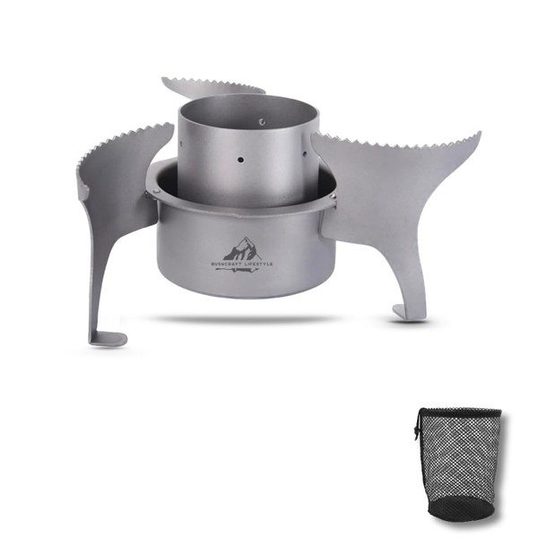 🔥Specificity: Bushcraft Lifestyle Made of 99.9% of high quality titanium, lightweight, anti-corrosion, antibacterial and neutral property. Comes with its convenient mesh bag for carrying and storing🔥Easy to use: This expandable mini alcohol stove is perfect for outdoor camping, picnic, hiking, etc🔥High burning efficiency: Our alcohol stove has a double layer design, there are two levels of combustion with micropores on the top, which produce a stable flame to cook faster🔥Expandable stability: These 3 retractable non-slip supports create safe stability and heats Effectively the pan or container🔥Practical: 3 retractable legs, with drawstring bag, convenient for storage and transport.