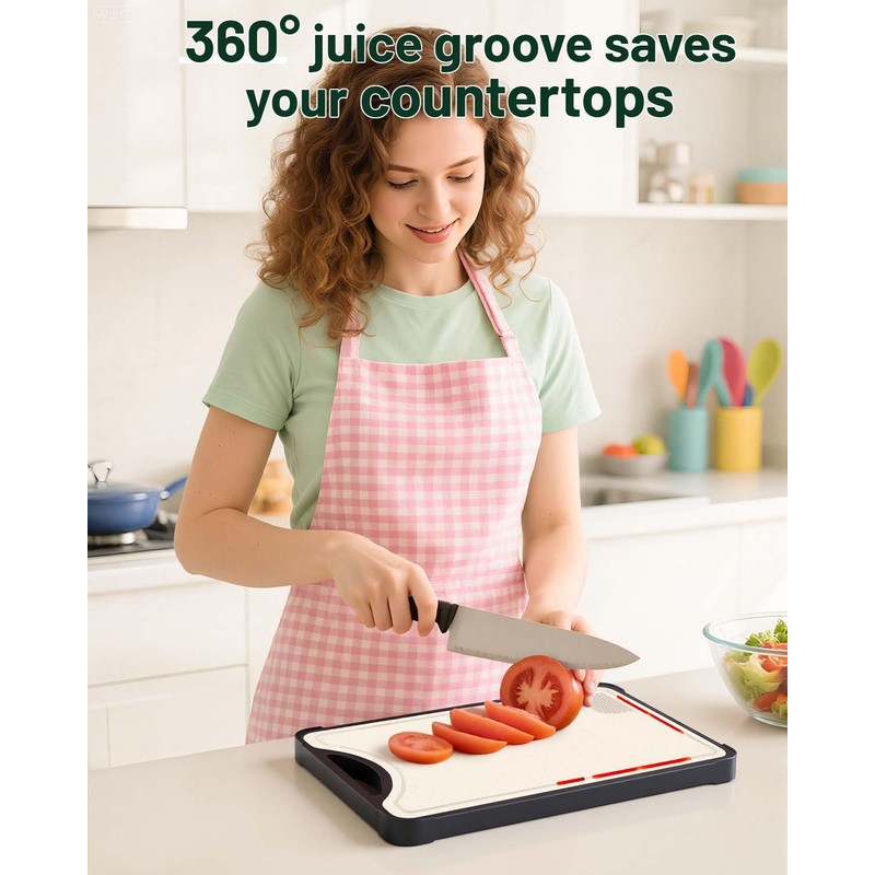 - SMART FEATURES FOR HOME CHEFS - Includes a built-in juice groove to catch meat and fruit juices, keeping countertops tidy, plus a garlic & ginger grinding area on the wheat straw side—saving you time during busy weeknight cooking.