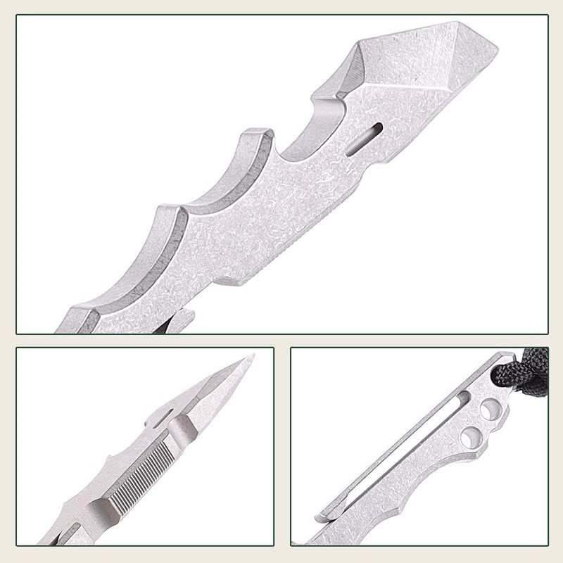 - [CNC processing]: The edc pry tool is made of titanium alloy material through CNC processing. The surface is treated with stone cleaning and flame burning titanium. The ergonomic streamlined design and anti-skid design of the handle give you a comfortable grip when using this EDC tool.