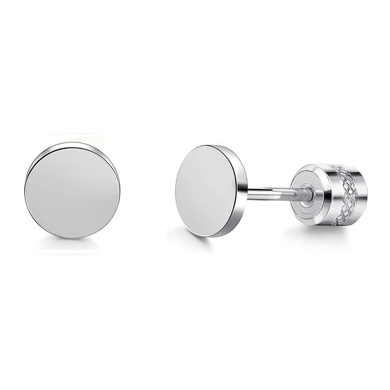 Titanium Round Flat Earrings 316L Surgcial Stainless Steel Screw Back Studs for Women Men Hypoallergenic for Senstive Ears.Helix Cubic Zirconia Back Piercing Post, Stainless Steel, No Gemstone