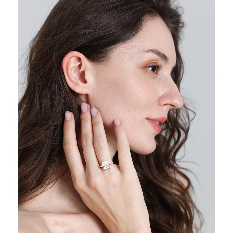 Titaniumcentral Engagement Ring Women's Gold Silver Rings with Cubic Zirconia 4CT Radiant Cut Wedding Rings Promise Ring for Women, Zirconia, Cubic Zirconia