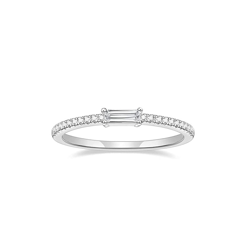 - Excellent workmanship: this elegant narrow ring made of brass and 1.5 mm wide with 2.5 x 5 mm 5A baguette cut centre stone and 18 pieces 1.2 mm small round zirconia, totally an eye-catcher