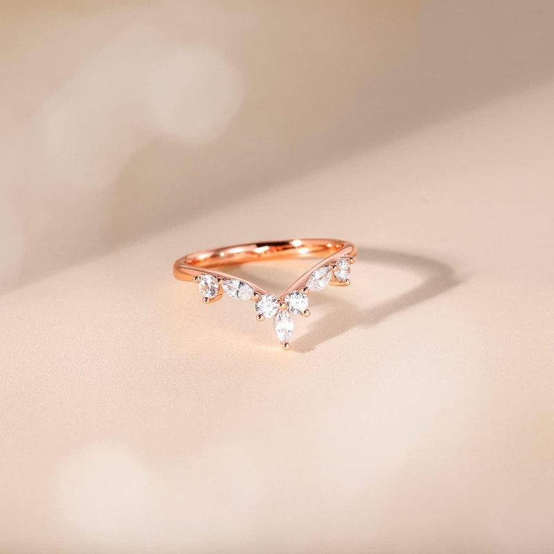 Titaniumcentral Women's Engagement Ring V-Shape Curved Narrow Marquise and Round Cubic Zirconia Wedding Rings Promise Ring, Non-precious metal, Cubic Zirconia