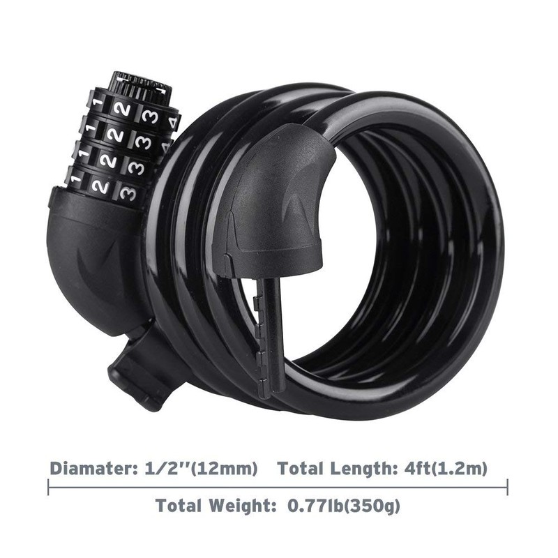 - Resettable combination bike lock: Smart 4-digit resettable coiling lock, easy to set your own personalized combinations. As a kind of combination lock, it saves you a lots of unnecessary troubles, like carrying the keys all the time.