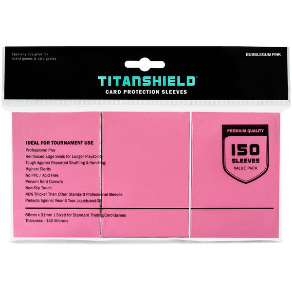 TitanShield (150 Cases/Bubblegum Pink) Standard Size Board Game Trading Card Sleeves Cover Protector for MTG, Dropmix