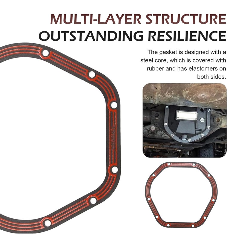 1. This differential cover gasket features a rubber-coated steel core structure, enabling dry installation without the need for sealant. It provides leak-free sealing for JEEP, FORD, and GMC Dana 60/50/70 differentials under various operating conditions.