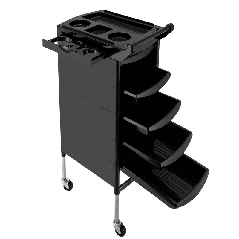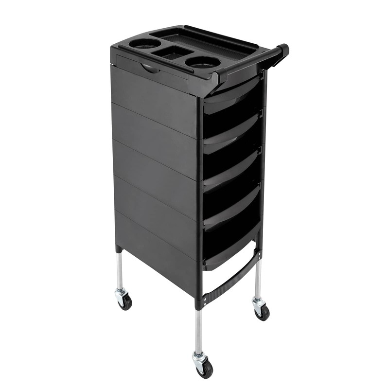 - Ample Storage Space: This salon trolley cart has 5 drawers which can provide you with enough storage space. In addition, the top work area and 2 side trays that slide in and out provide an extension storage space when needed.