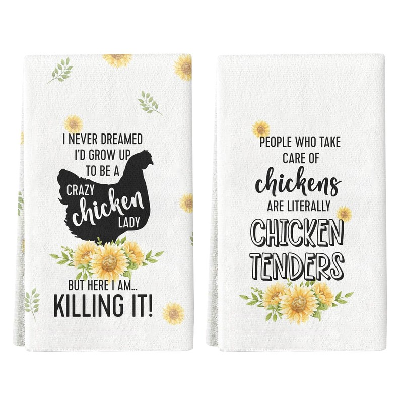 TiTkaiVi 2 Pcs Funny Kitchen Dish Towels Gifts for Women Mom Chicken Lovers, Crazy Chicken Lady Gift for Christmas Mother's Day Birthday Housewarming