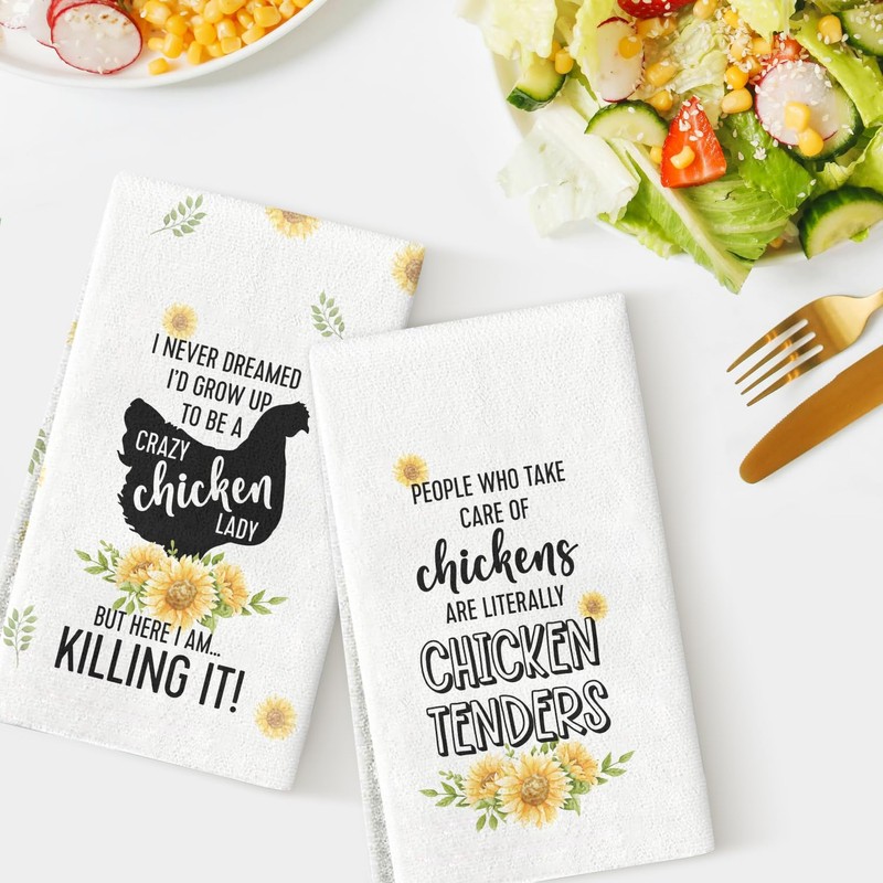 TiTkaiVi 2 Pcs Funny Kitchen Dish Towels Gifts for Women Mom Chicken Lovers, Crazy Chicken Lady Gift for Christmas Mother's Day Birthday Housewarming