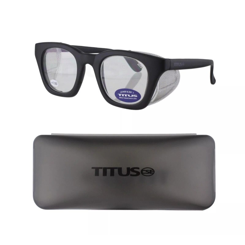 Titus Retro Safety Readers Cheaters Glasses Side Shields ANSI Z87 +1 +1.5 +2 - 1.0x with Case