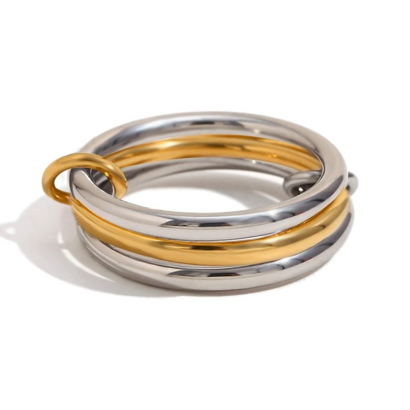 - Innovative Triple - Interlocking Stacking Design This ring set features an innovative design with intric three ringsately interlocked. The triple - interlocking structure not only makes a bold style statement but also offers great versatility. Stack all three for an elaborate look, or separate them to match different outfits. The interlocking parts are smoothly crafted, adding modern elegance. Whether for a party or daily wear, this unique design lets you show your personal style easily.