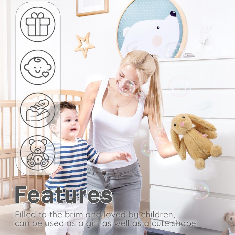 - Vacuum packaging: Our children's plush toys are sent in vacuum, when you receive the rabbit doll, it is compressed, you can gently tap and press and rub it to make the plush doll fluffy and soft, and bring it back to the state of the picture.