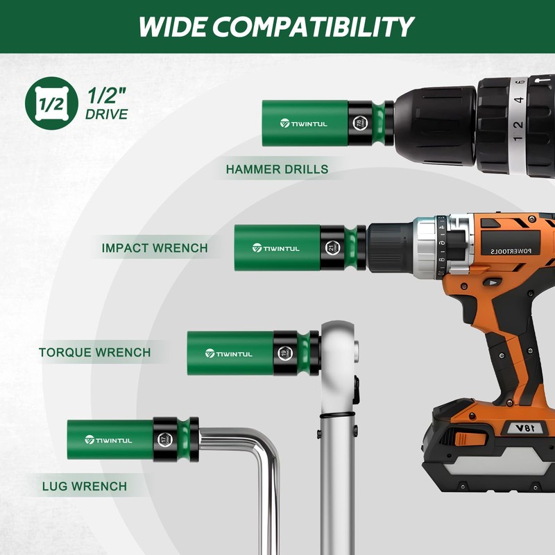 - 【Non-Marring Protector】This 1/2" impact socket set features a detachable rotatable anti-scratch protective cover on the outside and an insert without damage protection pad on the inside. During the process of removing, installing or assembling wheels, the design of the protective cover can prevent the hub from being worn or scratched, avoiding damage to the paint surface.