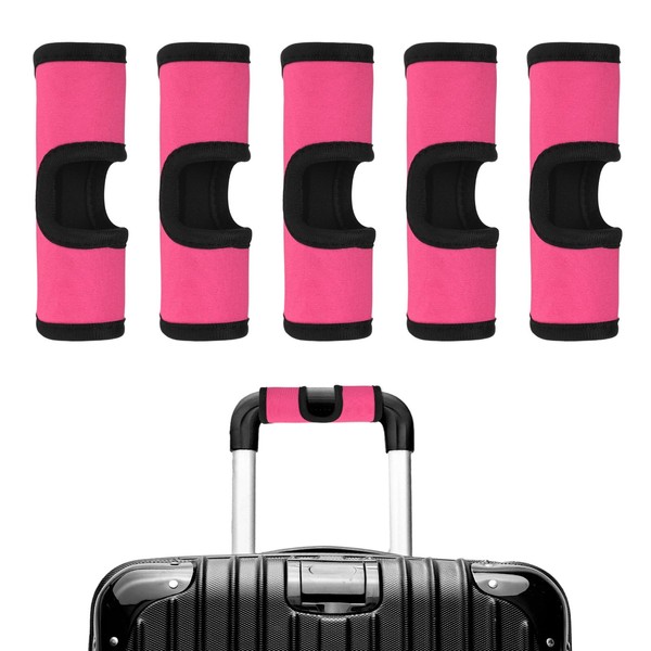 TIXIPEM Luggage Handle Wrap [5PCS] - Neoprene Luggage Identifiers Hollow Design Use for Push-Button Suitcase & Trolley Case - [Pink-6IN/15CM] Comfort Grip Handle Cover